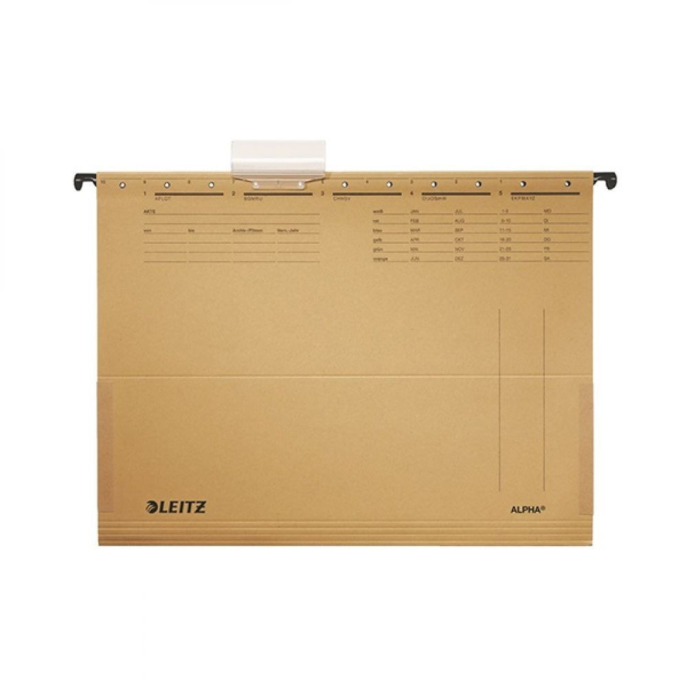 Minőségi függőmappa V-alakú, oldalt zárt kialakítással, mely megóvja a függőmappa tartalmát a kieséstől - lyukak az elő-és hátlapon lefűzőcsík rögzítéséhez - 100%-ban újrahasznosított kartonból, Blue Angel minősített - zsebekkel a dokumentumok biztonságos tárolásához - a nagy méretű, erős, műanyag címketartóra akár 4 sorban is írhatunk - erős és tartós fém fülek - nátronkarton, 250 g-os - 6 cm hosszú címketartó, változtatható címkeállás - fesztávolság: 330 mm - méret: 348x260 mm Katalóguskód: 35905