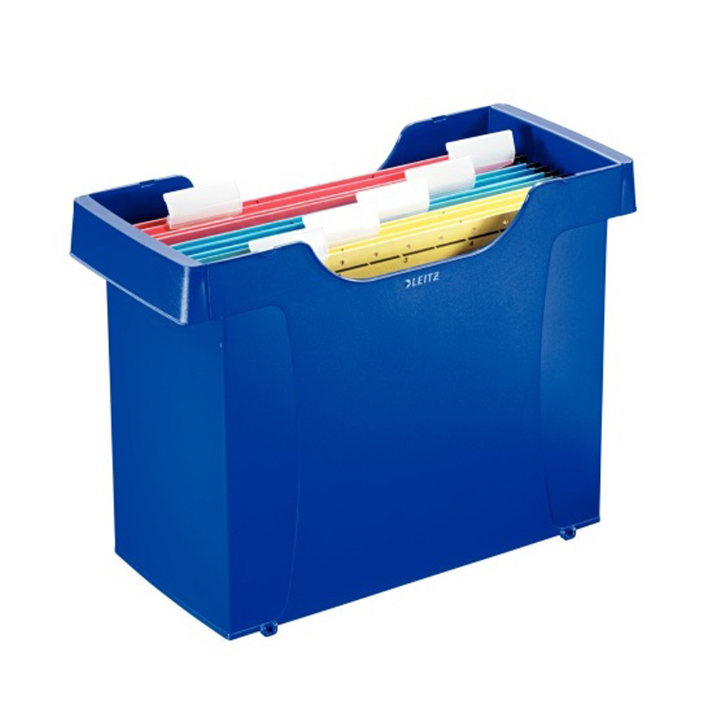 Formatervezett függőmappa tartó, amely könnyen hordozható és lehetővé teszi a függőmappatartók egymásra helyezését. A4-es méretű függőmappák tárolására alkalmas 5 db Leitz Alpha függőmappával szállítjuk (vegyes színek) Kis helyet foglal Lowered front for easy readability of tabs Fogantyú a könnyebb horhozhatóság érdekében Egymásra helyezhető Katalóguskód: 35781