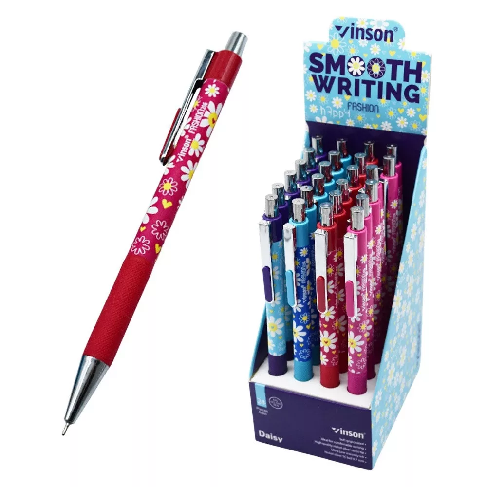 Golyóstoll nyomógombos 0,7mm Vinson Daisy 206 vegyes test displ 24 db/display