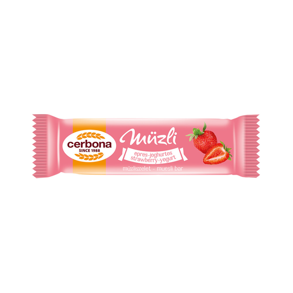 A Cerbona epres-joghurtos müzliszelet értékes tápanyag összetételű, élelmirostban gazdag, ezáltal jól beilleszthető az egészséges táplálkozásba. A epres-joghurtos müzliszeletet az eper és málna darabkák, epres bevonó, joghurtpor, valamint a gabonapelyhek és a lapított zabpehely teszik ellenállhatatlanul finommá. Könnyen magaddal viheted és bárhol fogyaszthatod müzliszeleteinket. Hiteles tájékoztatás: Elkötelezettek vagyunk termékeink biztonságának garantálásáért, nyomon követjük a termékbiztonsággal kapcsolatos valamennyi európai uniós és hazai szabályozást és biztosítjuk termékeink azoknak történő megfelelését. Az EU 2023/988-as számú Általános Termékbiztonsági Rendeletét (GPSR) is alkalmazzuk, így ha a termékeink biztonságát illetően fogyasztóként kérdése, észrevétele van, vagy esetleg balesetről van tudomása, kérjük, írja meg nekünk.