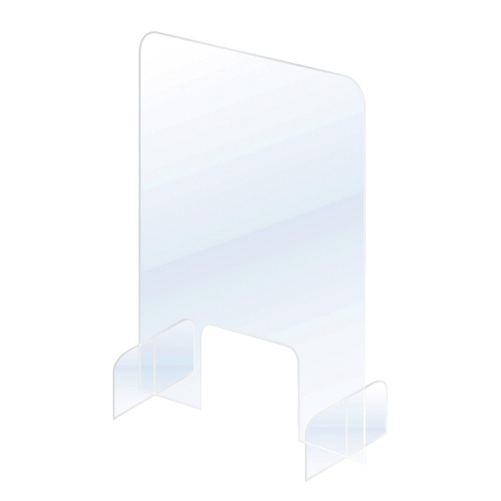 Pult és asztal osztó. 20 x 25 cm kivágás az alján a tárgyak, dokumentumok átadásához. Átlátszó, könnyen tisztíható és fertőtleníthető. Könnyen összeszerelhető ( nincs szükség szerszámokra), hordozható. 24 cm alapmélység biztosítja, hogy a legtöbb pulton használható legyen. Méret : 49,5 x 84,5 x 24 cm. Katalóguskód: 30834